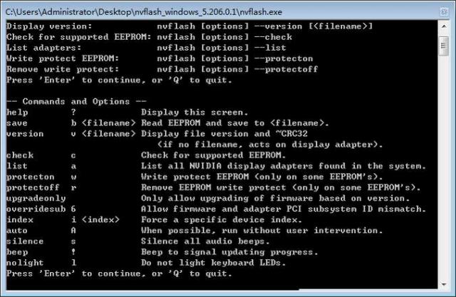 更新顯示卡BIOS的參數(shù)為:「nvflash -4 -5 -6 xxxx.rom」xxxx.rom為BIOS檔名。