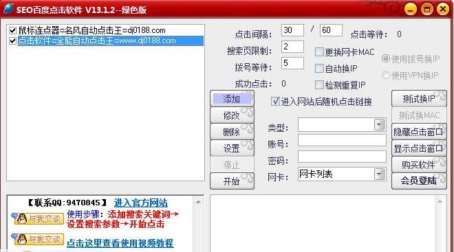 名風SEO百度搜索點擊優(yōu)化軟件是一款通過模擬用戶點擊讓你的關鍵詞達到排名提升效果的軟件,名風SEO通過撥號換IP、更換網(wǎng)卡MAC地址,全自動模擬手工在搜索引擎中搜索關鍵詞。從而達到提升關鍵詞排名的效果。軟件內置adsl拔號,多關鍵詞輪流搜索點擊、關鍵詞2次搜索、時間段點擊設置、2次客戶網(wǎng)站頁面隨機點擊、隨機間隔等智能化操作設置。是站長朋友大量非常常有用的一款工具。