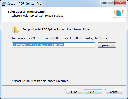 setup will install PDF Splitter Pro into the following folder.