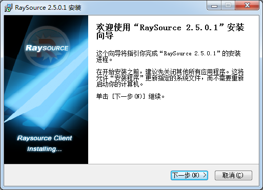 1、歡迎使用“RaySource 2.5.0.1”安裝向?qū)?br />