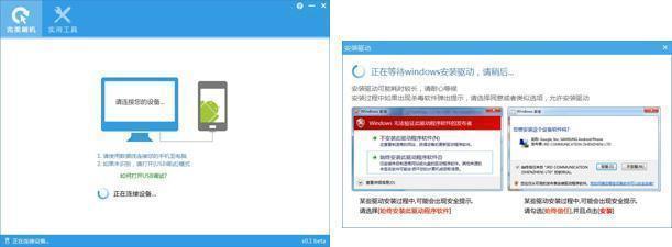 1.手機連接電腦,運行完美刷機,立刻連上手機設備。第一次連接的話,完美刷機會自動為您安裝手機驅動。在此過程中,您有可能會遇到軟件提示設備已離線的問題,請點擊查閱為何提示設備離線一文,尋找解決方案。