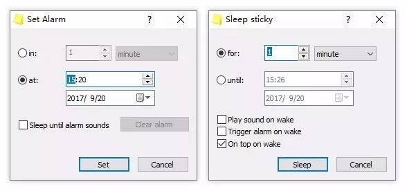 通過右擊標(biāo)題區(qū),在菜單中單擊“Alarm”設(shè)置提醒時間(如下圖),如果不想讓提醒便簽一直顯示在桌面上,可讓便簽“Sleep”,在便簽“wake”的時候同時提醒。