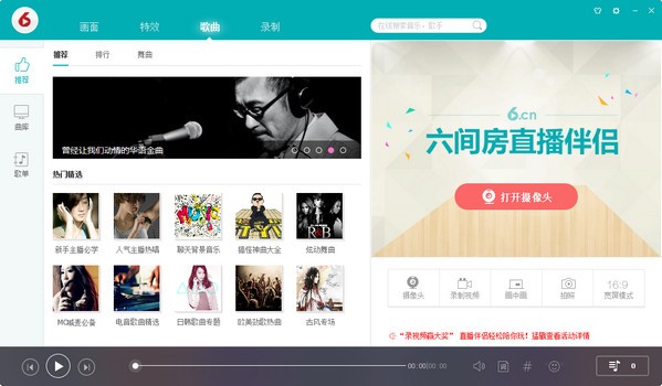 六間房直播伴侶是一款由六間房直播官方打造的適用于六間房主播使用的一款直播伴侶,該工具支持?jǐn)?shù)萬人同時(shí)在線視頻聊天、在線K歌跳舞、視頻交友,上線后深受視頻直播用戶的推崇,獨(dú)創(chuàng)640*480高清畫質(zhì)、美膚瘦臉、畫中畫等全新功能,用戶只要打開軟件,就可以卡拉ok,選歌簡單便捷,錄音效果很好,錄制后的視頻可以分享給好友觀看!