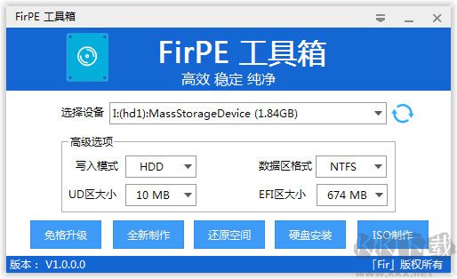 FirPE 工具為內(nèi)置,移除U盤不影響 FirPE 的正常使用