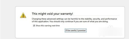 語言包裝好之后,在地址欄輸入 about:config ,回車。有警告提示,點I'll be careful,I promise!