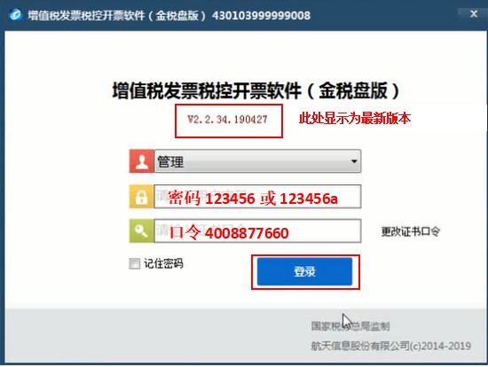 三、升級(jí)成功后在登錄界面紅色框框處顯示V2.2.34.190427版本即表示升級(jí)成功。