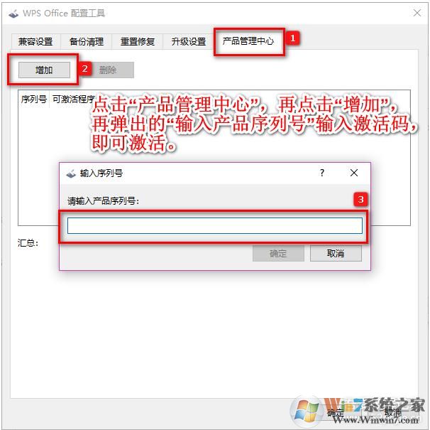 3、這時(shí)會(huì)出現(xiàn)配置工具,我們就點(diǎn)擊,產(chǎn)品管理中心,再點(diǎn)擊增加,出現(xiàn)輸入框,把你的產(chǎn)品密鑰輸入進(jìn)去;