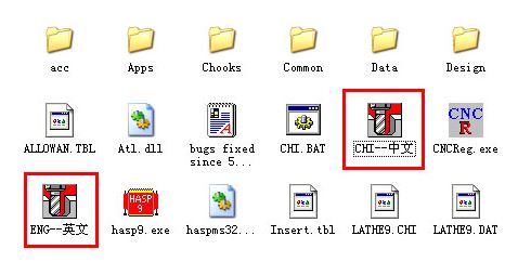 10、打開(kāi)“C:\Mcam9”目錄,你會(huì)發(fā)現(xiàn)出現(xiàn)“CHI--中文”和“ENG--英文”兩個(gè)圖標(biāo),點(diǎn)擊“CHI--中文”圖標(biāo)后,再運(yùn)行mastercam9.1主程序即為中文版本。