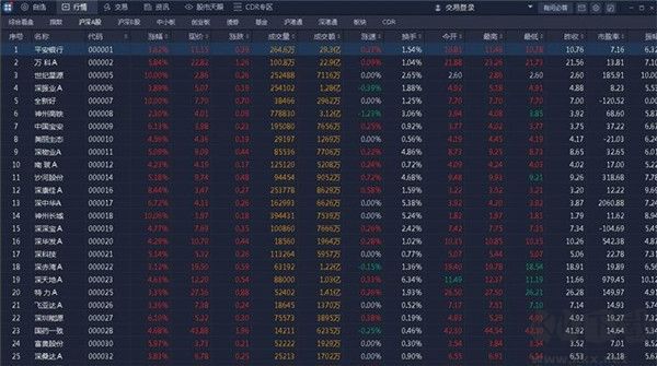 接下來我們就可以試一下怎么將股票添加到自選股中。點(diǎn)擊軟件主界面頂部功能欄中的行情,打開骨片行情頁面。我們可以查看A股、B股、中小板、創(chuàng)業(yè)板等板塊的股票行情;