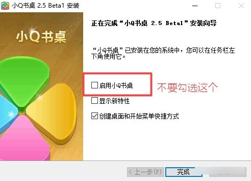 2、安裝QDeskSetup-2.5.1278.201.exe,安裝完成后不要勾選啟用小Q書桌選項,因為一旦啟用小Q書桌,就會自動加載注入模塊,導(dǎo)致待會替換注入模塊的時候提示文件正在被使用。