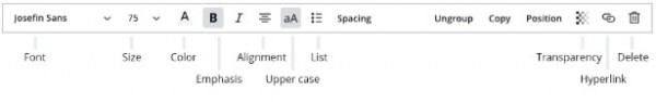 一旦更改文字內(nèi)容,你可以將其格式化,以更好符合你心中的設(shè)計。你可能會注意到,點擊任何文字框都會使狀態(tài)欄下方顯示文字編輯器工具欄。