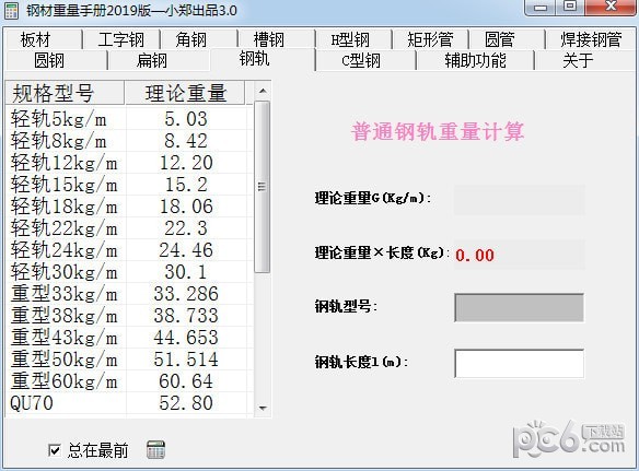 鋼材重量手冊是小鄭出品的元支持鋼板、工字鋼、角鋼、槽鋼、H型鋼、無縫管、鋼管、鋼軌、C型鋼理論重量的計算、磅差處理、金額大寫轉(zhuǎn)換等功能的綠色小工具,體積小功能強,可以用于計算查詢各種鋼材鋼截面特性,公歡迎有需要使用這款鋼材重量計算工具的用戶前來獲?。?/p>