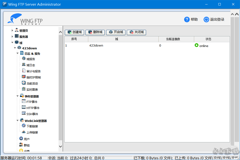 13、接下來(lái)運(yùn)行軟件,輸入安裝過(guò)程中設(shè)置的管理員賬戶,并登陸即可無(wú)限制永久免費(fèi)使用Wing FTP Server6.0.7了。
