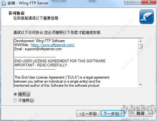 2、雙擊WingFtpServer.exe運(yùn)行,選擇簡(jiǎn)體中文。