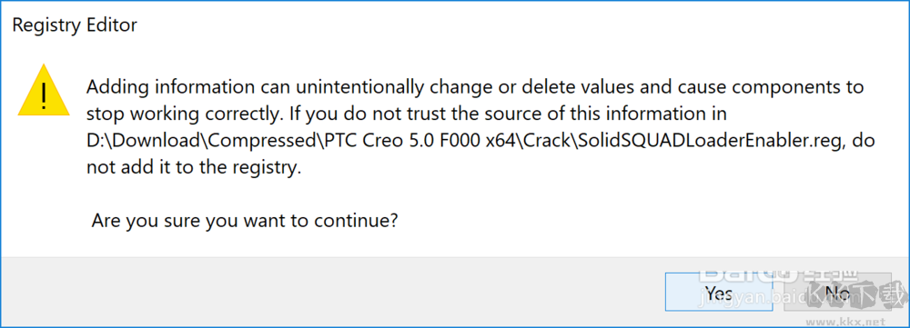 2、運(yùn)行crack文件夾中的SolidSQUADLoaderEnabler.reg文件,完成注冊表替換