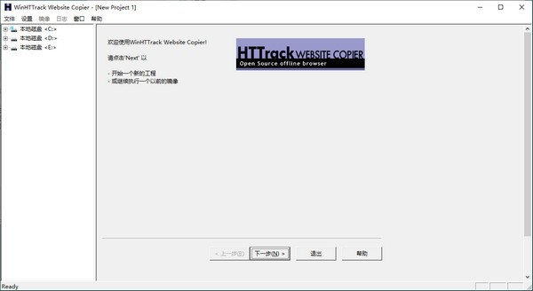 1、打開(kāi)WinHTTrack Website Copier,下一步
