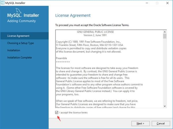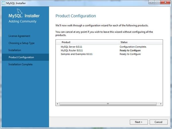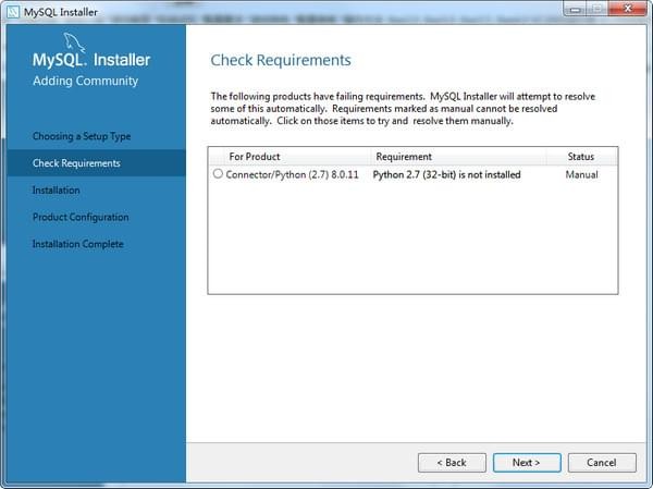 第一個選項(xiàng)包含了一些MySQL其他組件,如果只安裝MySQL數(shù)據(jù)庫,選擇第二項(xiàng)Server only就行。這里我直接選擇默認(rèn)的Developer Default