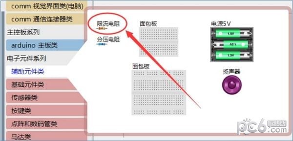 LED指示燈不能直接連接到主板上,需要通過一個(gè)限流電阻降低電流。限流電阻在電子元件系列里邊的輔助元件類,共有限流電阻和分壓電阻兩種。鼠標(biāo)左鍵點(diǎn)擊可以添加到編程界面中