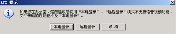 4. 如果您在局域網(wǎng)內(nèi)使用“遠(yuǎn)程登錄”時(shí),將彈出善意提示窗口,提醒您是在局域內(nèi)部,是否使用遠(yuǎn)程登錄。如圖1.8所示。