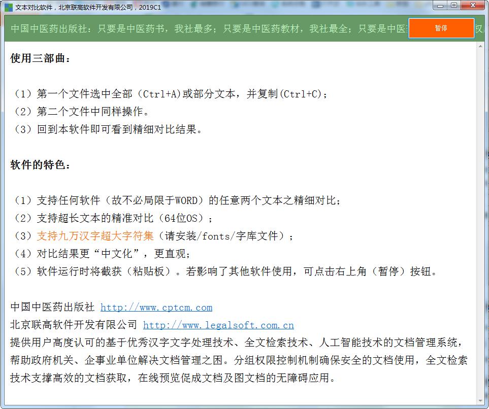 (1)支持任何軟件(故不必局限于WORD)的任意兩個文本之精細對比;