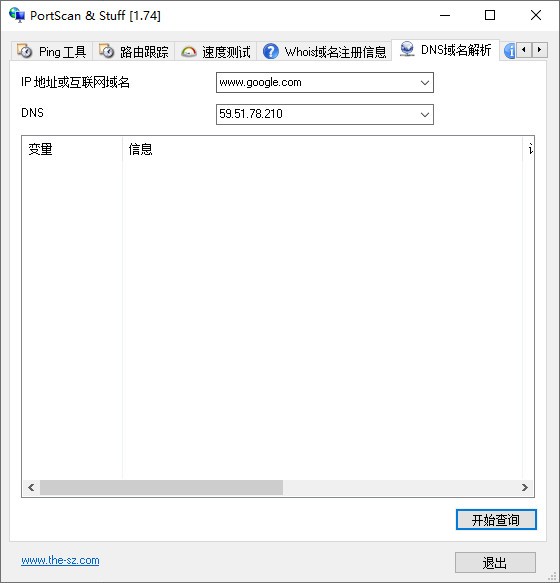 7、設(shè)置好ip地址和DNS點(diǎn)擊開(kāi)始查詢可以進(jìn)行DNS的域名解析,見(jiàn)下圖所示: