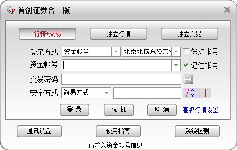 首創(chuàng)行情分析資訊系統(tǒng)(原:首創(chuàng)證券合一版)是一款集普通交易、融資融券交易與港股交易合一版。統(tǒng)是首創(chuàng)證券公司為廣大投 資者提供的新一代網(wǎng)上交易系統(tǒng)。提供多界面自由切換,多種登陸模式,操作簡便快捷,功能強(qiáng)大齊全, 并且該系統(tǒng)速度快,業(yè)務(wù)并發(fā)處理能力強(qiáng),系統(tǒng)并發(fā)在線人數(shù)容量大, 將為您帶來全新的操作體驗(yàn)