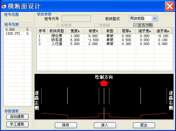 參數(shù)化繪制各類型道路,快速處理各種異型交叉口及弧線道路。方便且迅速修改已繪成道路的位置、板塊寬度、左右建筑紅線后退距離、道路名稱等參數(shù)。道路自動交叉處理,倒角、倒弧處理,倒角半徑修改,自動繪制、 編輯車港,喇叭口,道路中心環(huán)島,綠化帶等道路配套設施。