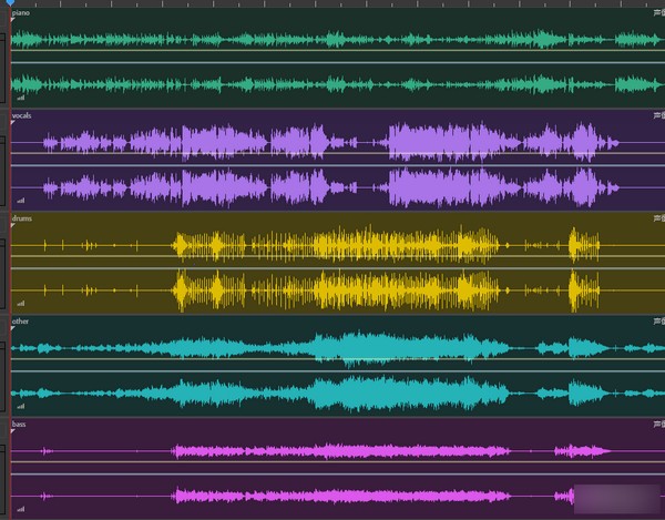 把這五個(gè)軌道拖入audition即可看到非常好效果,完美按照樂(lè)器剝離。