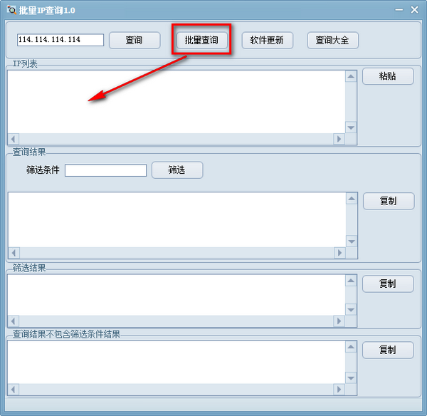二、點(diǎn)擊批量查詢即可快速查詢IP地址