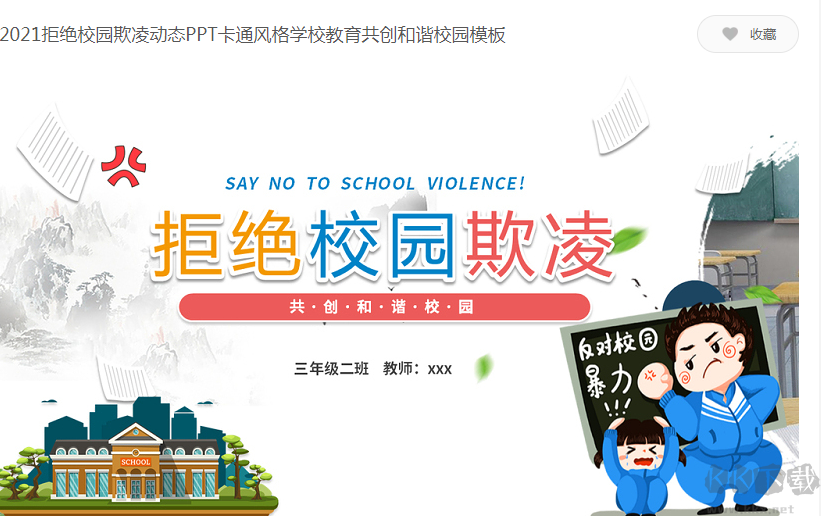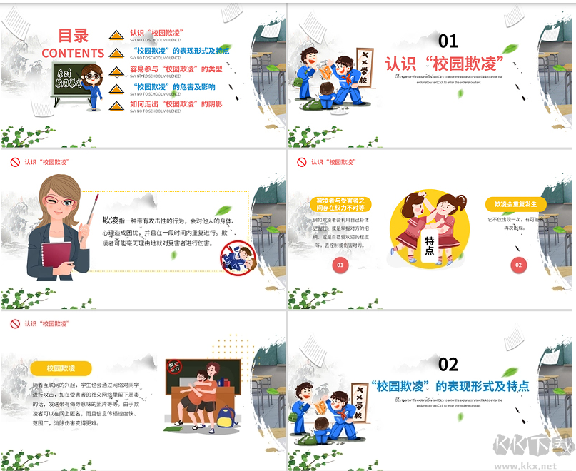 2021拒絕校園欺凌動(dòng)態(tài)PPT卡通風(fēng)格學(xué)校教育共創(chuàng)和諧校園模板