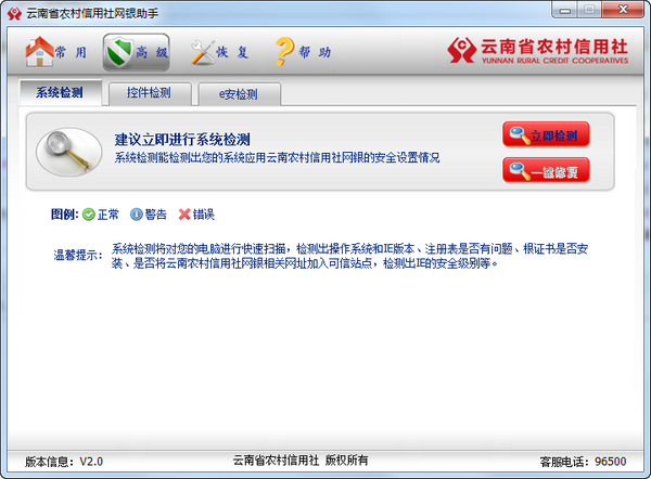 控件檢測將檢測出云南省農(nóng)村信用社網(wǎng)銀安全控件是否安裝,從而保證用戶安全使用網(wǎng)銀業(yè)務(wù)。