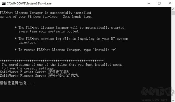 將安裝并啟動“SolidWorks Flexnet Server”