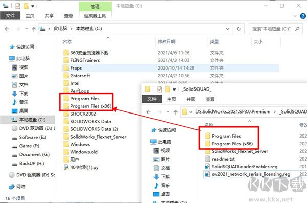 來自文件夾“Program Files\SOLIDWORKS Corp”和“Program Files (x86)”的破解文件