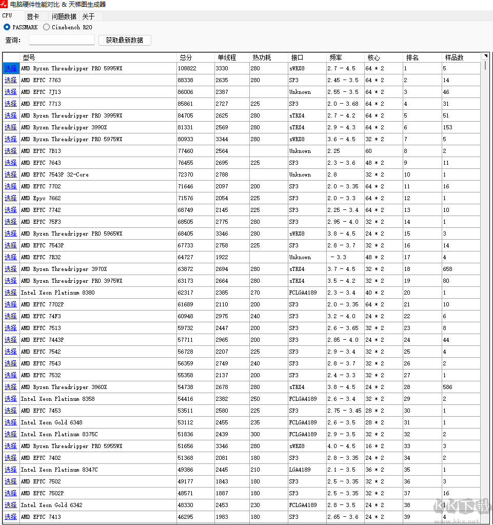 相信很多硬件玩家都會在網(wǎng)上搜索CPU、顯卡的天梯圖來對比一些硬件的性能,不過一直都要找最新的,現(xiàn)在小編給大家分享這么一款軟件讓大家自己制作生成CPU顯卡天體圖,數(shù)據(jù)來源于CPU和GPU數(shù)據(jù)來源于PASSMARK 、Cinebench,,一般都是最新的,電腦硬件性能對比&天梯圖生成器,可以生成CPU、顯卡的天梯圖。使用的時候請保證網(wǎng)絡(luò)連接。