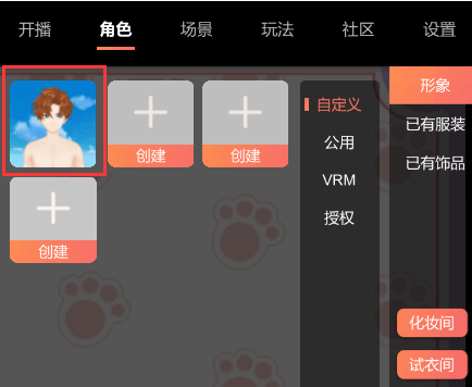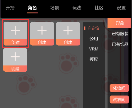 1、角色-形象-自定義中,點擊【創(chuàng)建】,即可選擇創(chuàng)建角色的類型。