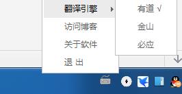 2、在電腦右下角隱藏的任務(wù)欄中右鍵圖標(biāo)可以進(jìn)行選擇翻譯引擎,退出等操作。
