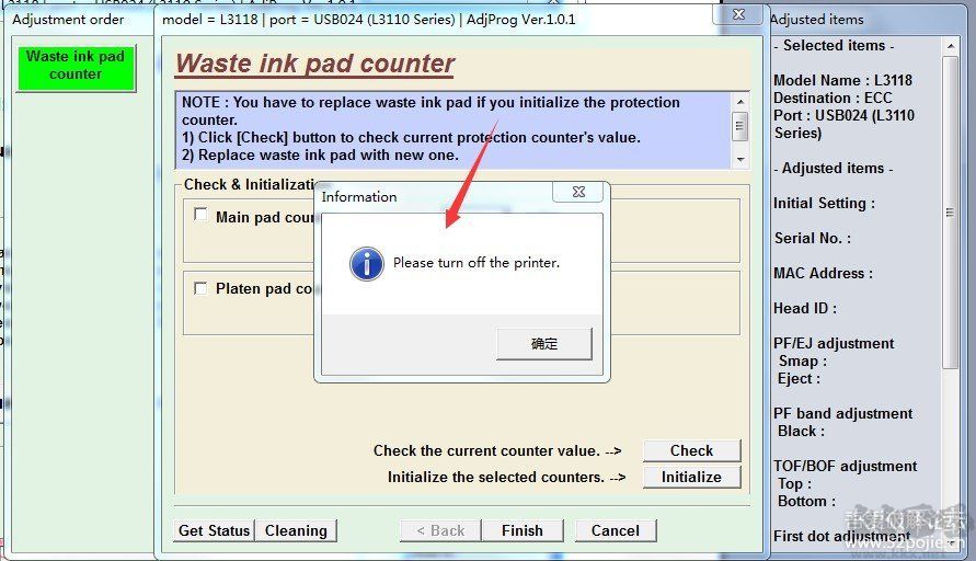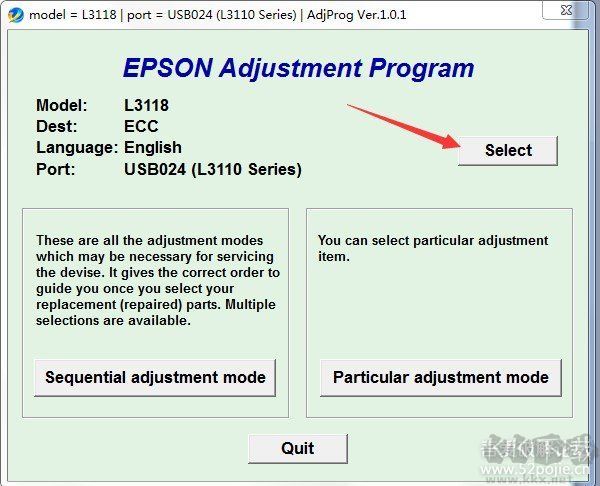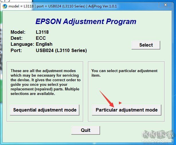 愛(ài)普生打印機(jī)清零軟件使用步驟: