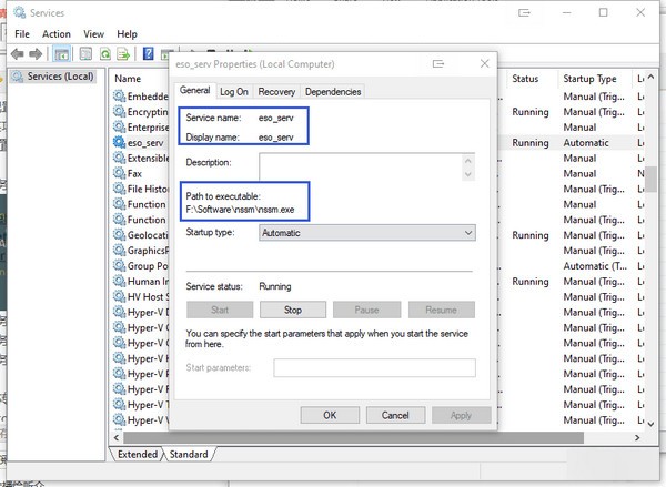1)圖形界面: nssm edit 見下圖所示: