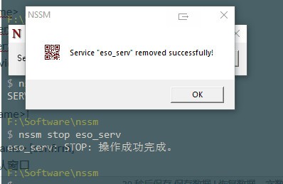 1)彈出確認窗口:nssm remove [] 見下圖所示: