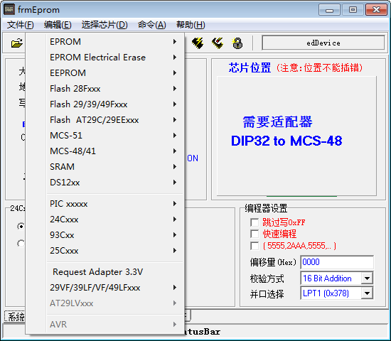 一、下載打開軟件,選擇需要編程的EPROM芯片。