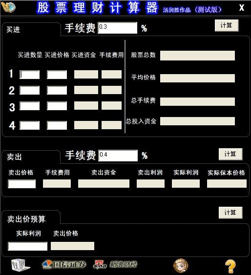 股票理財計算器可以幫助玩短線或者長線的股民朋友進行計算當(dāng)前股票收益的計算工具,每天買進的數(shù)量,價格,資金,手續(xù)費都可以幫你進行精確的計算,從而讓你輕輕松松理好你的股票,如此一來就可以明明白白的賺錢了!