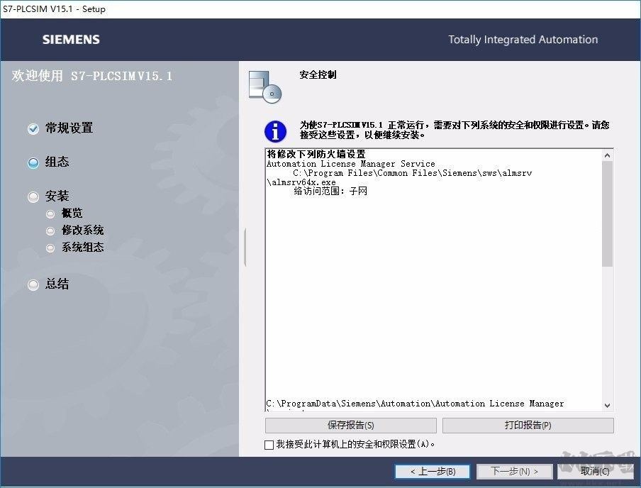 為使S7 -PLCSI- V115.1正常運(yùn)行,需要對下列系統(tǒng)的安全和權(quán)限進(jìn)行設(shè)置請您接受這些設(shè)置,以便繼續(xù)安裝。