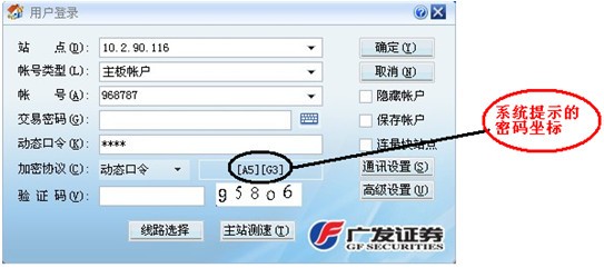 廣發(fā)口令卡的背面印有5*8矩陣,共40格,每一格印有2位數(shù)字,每一個卡對應(yīng)唯一的序列號,因此,每一個口令卡所印制的數(shù)字均不相同。只要經(jīng)過簡單的將口令卡跟用戶帳號綁定操作并開通帳號后,登陸系統(tǒng)會隨機(jī)指示兩個座標(biāo),正確輸入相應(yīng)位置數(shù)字后才能進(jìn)入系統(tǒng)。