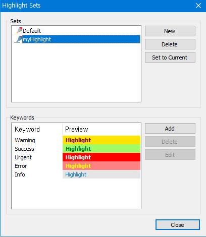 軟件允許用戶使用用戶定義的文本和背景顏色來區(qū)分終端的字符串輸出。用戶可以輕松管理他們想要突出顯示的關鍵字,也可以創(chuàng)建分組(突出顯示集),以便在特定情況下使用設置的關鍵字。