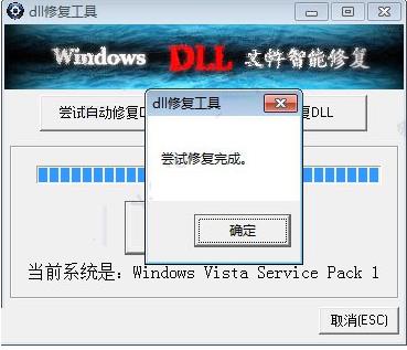 3、出現(xiàn)修復(fù)完成之后再測試系統(tǒng)DLL是否正常。