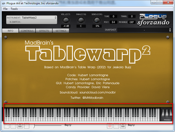 Plogue公布sforzando,這是一個(gè)適配SFZ2.0的取樣播放器,適用Windows和Mac。