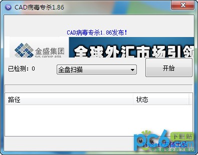 1.運(yùn)行CAD病毒專(zhuān)殺工具,選擇CAD病毒查殺位置,點(diǎn)擊開(kāi)始。