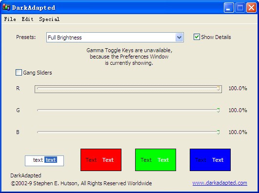 DarkAdapted是一個可以幫助你改變屏幕的Gamma值使得屏幕變的更亮的軟件。如果你的顯示器沒有高亮模式調(diào)節(jié)按鈕或者老式顯示器亮度調(diào)節(jié)按鈕失靈的話,可以使用KKX分享的DarkAdapted來進(jìn)行調(diào)節(jié)!