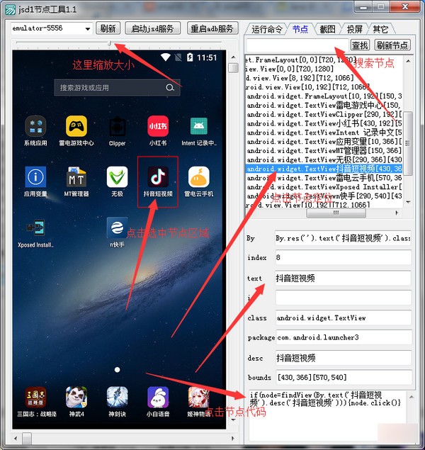 jsd1節(jié)點工具是一款適用于安卓手機模擬器快速查看控件,該工具完美支持截圖投屏中控調(diào)試,使用它來獲取控件的速度是相對比較快的,用雷電模擬器測試取控件大概30毫秒吧,截圖200毫秒吧,投屏用的也是截圖方式,不過投屏圖片經(jīng)過壓縮后再轉(zhuǎn)回的大概要100毫秒,當(dāng)然手機電腦的配置高一點也會影響速度哦!