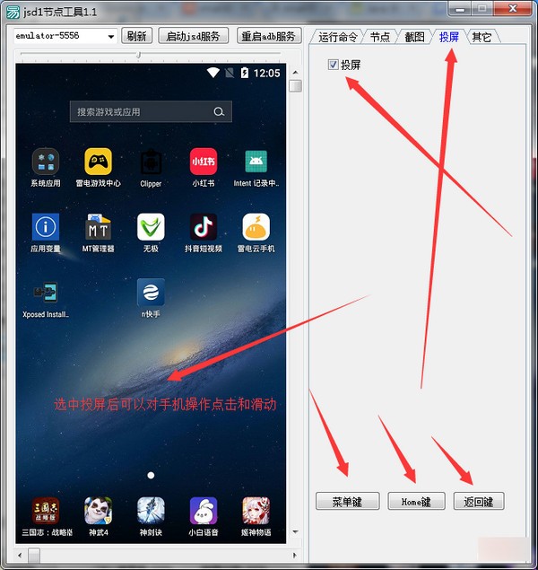 選中投屏后可以對手機操作點擊和滑動